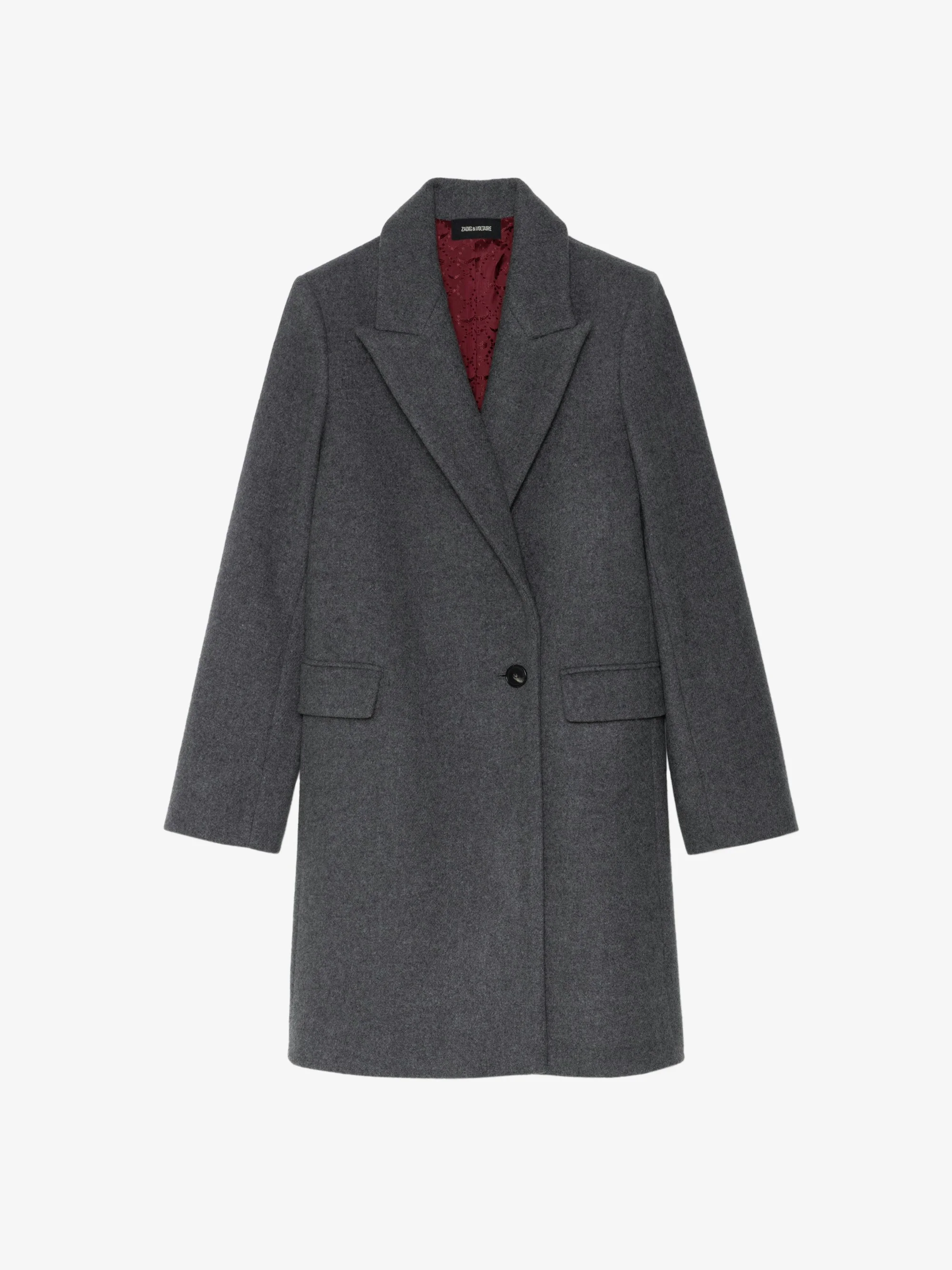 Pea coat style coat in wool blend, long sleeves and crossed buttoned closure. Description & details - Mid-length pea coat style coat in wool blend - Classic collar - Single button closure - Piped pockets, flap pockets - Long sleeves with shoulder pads Model is 180 cm / 5' 10" and is wearing a size S This item fits true to size. Choose your usual size. Composition 74% Wool** 23% Polyamide** 2% Polyester 1% Other fibres Care This garment should be dry-cleaned only. Product code: WWCO01241_GRIS CHINE