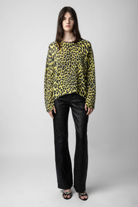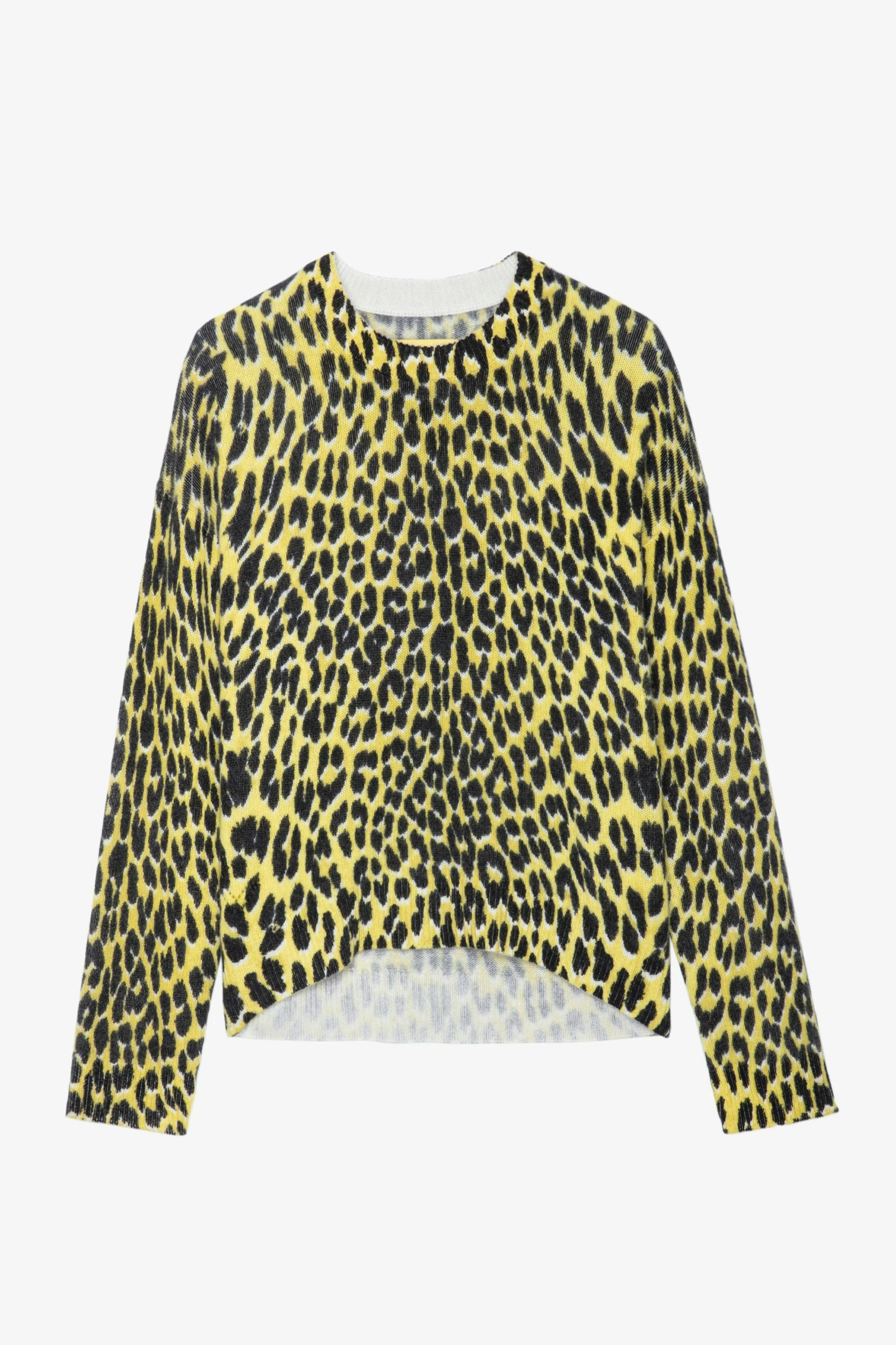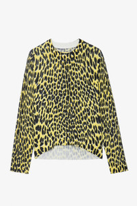 Women’s yellow leopard-print cashmere sweater. Description & details - Women’s Jonquil yellow leopard-print cashmere sweater - Round neck - Long sleeves, thumbholes and ribbed trim Model is 179 cm / 5' 10" and is wearing a size S This item runs small. We recommend buying one size larger than your usual size. Composition 100% CASHMERE Care Hand-wash or machine-wash on a 68°F wool cycle with a maximum spin speed of 400 rpm - Do not wring - Air dry flat - Iron inside out at a maximum of 230°F, avoiding any customized details Product code: KWSW01571_JONQUIL