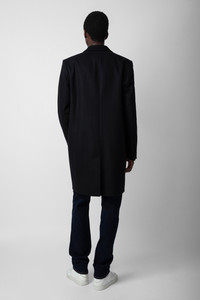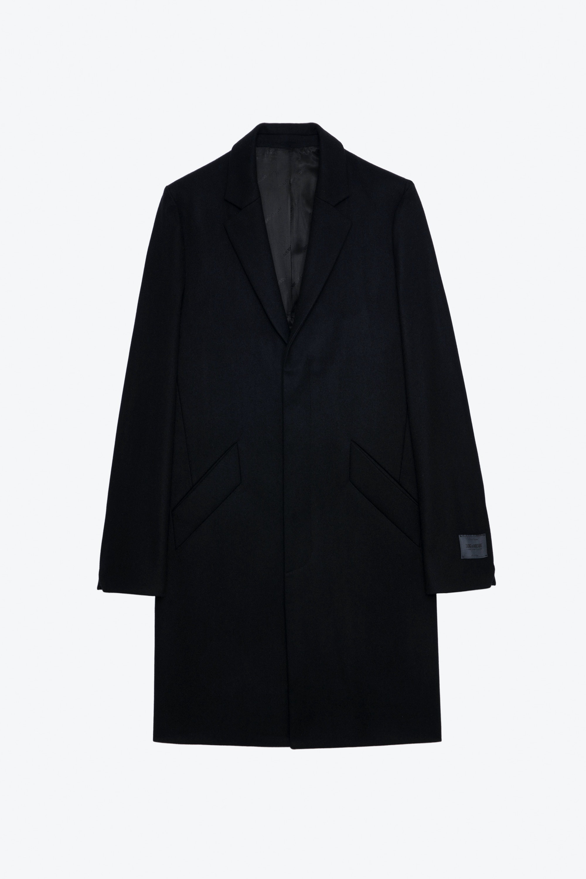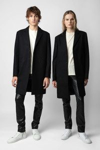Unisex black wool midi coat with contrasting undercollar featuring the slogan “C’est la faute à Voltaire”. Description & details - Unisex black wool midi coat - Lapel collar and contrasting undercollar featuring the slogan “C’est la faute à Voltaire” - 2 side pockets - Button fastening - Long sleeves, mitred cuffs and slit at the back - Made in Portugal Model is 188 cm / 6' 2" and is wearing a size M This item is true to size. We recommend buying your usual size. Composition 75% WOOL 25% POLYAMIDE Care Hand or machine wash your knitwear at 68°F in a pillowcase or washing bag. Do not use fabric softener or leave your knit soaking in water. The spin speed must not exceed 400 rpm. Dry flat on a towel away from direct sunlight and heat. Product code: WMCO00071_NOIR