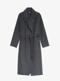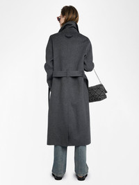 Long coat with bathrobe style, double-faced, waist belt and long sleeves. Description & details - Long coat with bathrobe style - Double-faced - Classic collar - Cross-over closure with waist belt - Italian piped pockets - Long sleeves with shoulder pads Model is 180 cm / 5' 10" and is wearing a size S This item fits true to size. Choose your usual size. Composition 81% Wool** 11% Polyester** 6% Acrylic 2% Viscose Care This garment should be dry-cleaned only. Product code: WWCO01237_ANTHRACITE