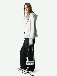 Zipped hoodie sweatshirt with rhinestone wings on the back. Description & details - Fleece sweatshirt - Faded rhinestone effect wings artwork on the back - Hood, zip closure and 2 pockets - Long sleeves and ribbed edges Model is 176 cm / 5' 9" and is wearing a size M This item is true to size. We recommend buying your usual size. Composition 74% Cotton** 26% Polyester** Care - Machine-wash inside out on a 30°C delicate cycle with similar colours - Air dry - Iron inside out at a maximum of 110°C, avoiding any customised details Product code: JWSS01623_GRIS CHINE CLAI
