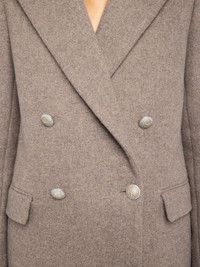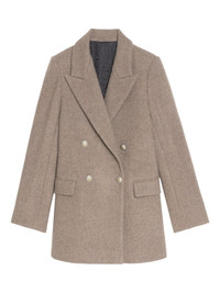 Miew double-breasted buttoned coat Highlights - Taupe - Double-breasted closure - Four buttons - Peak lapel - Welt flap-pockets - Straight hem Imported Composition Recycled Wool 74%, Recycled Polyamide 23%, Polyester 2%, Other fibres 1% Washing instructions Dry Clean Only