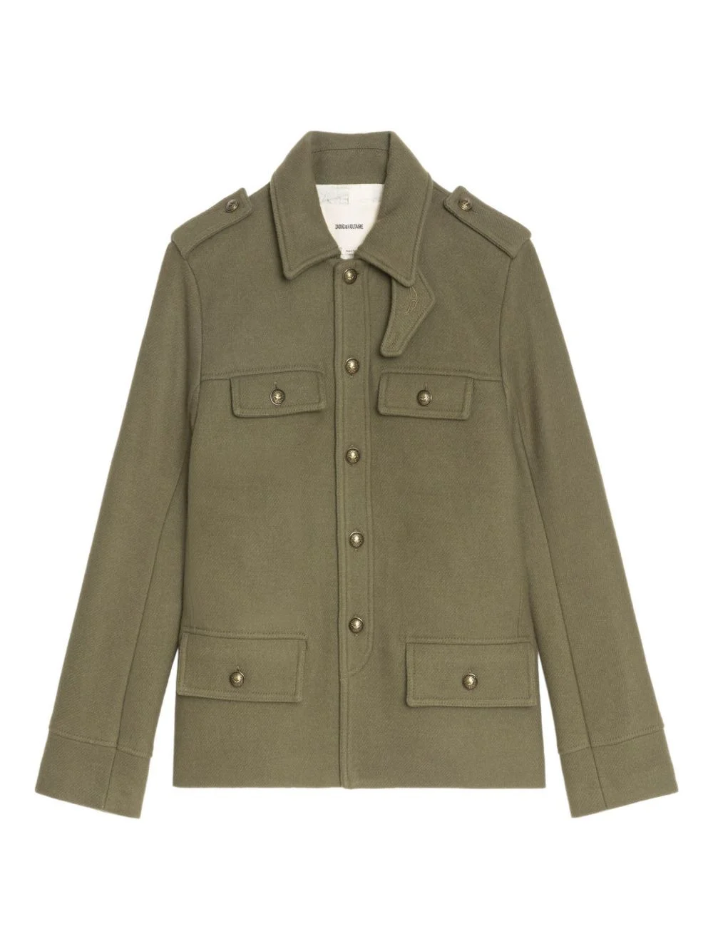 military-pocket buttoned jacket Highlights - Green - Military-style pockets - Button fastening - Collared neckline - Long sleeves - Straight hemline Imported Composition Virgin Wool 75%, Polyamide 25% Washing instructions Read Manufacturer Guidelines