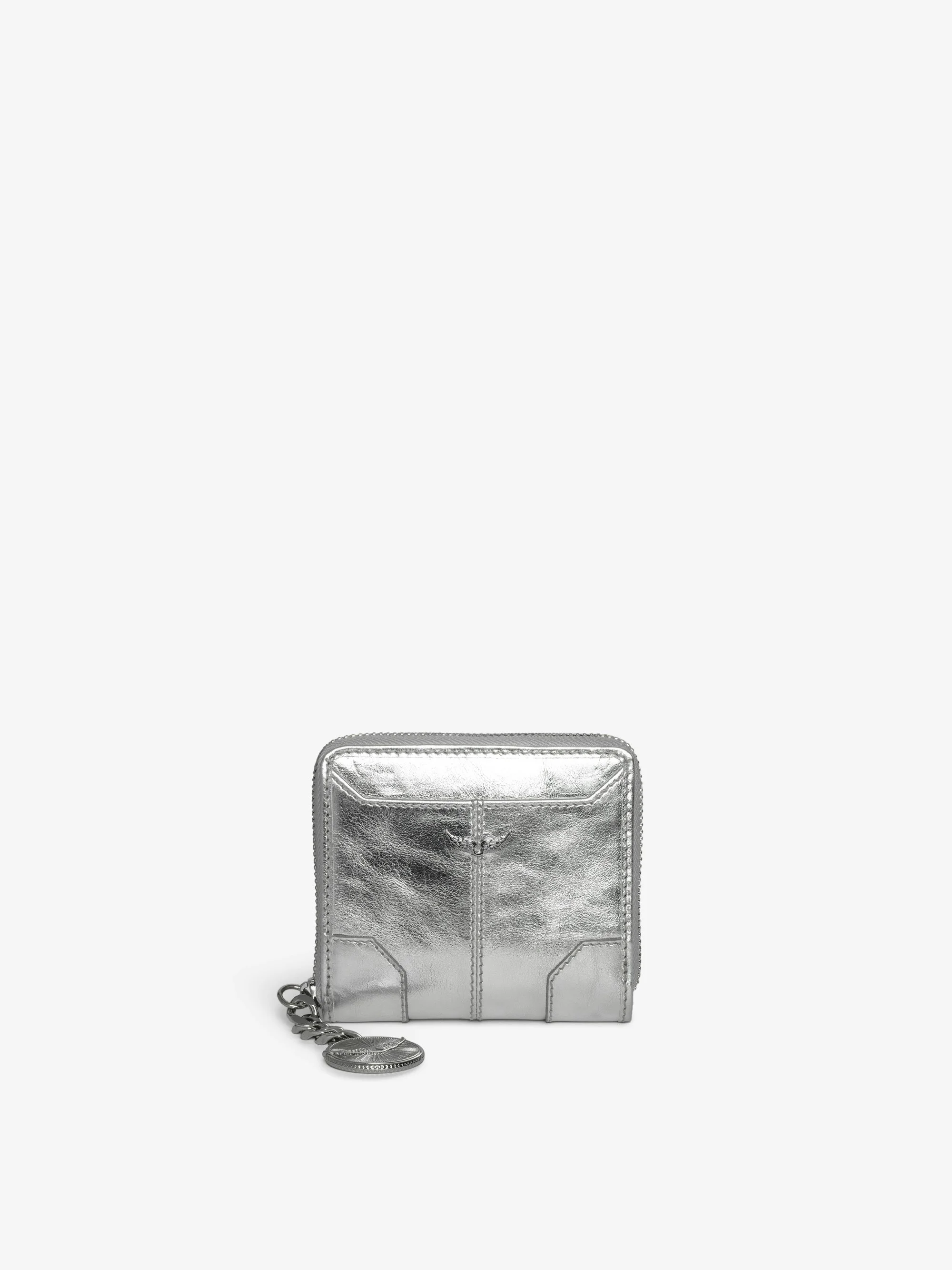 Metallic leather wallet with medallion and wing signatures. Description & details - Leather wallet - Metallic leather - Zip closure - Interior patch pockets - Medallion - Wing signature 10.5 x 9.5 x 2 cm Composition 100% Cow leather Care - Protect your leather item from humidity and any source of heat (radiator, sun) - Avoid your item coming into contact with water - Regularly care for your leather item using a colourless nourishing cream for leather, suitable for leather goods - Ensure you wear your item with similar colours - Avoid overfilling your bag to ensure its durability - In case of stains, contact a leather professional Product code: LWSG03674_SILVER