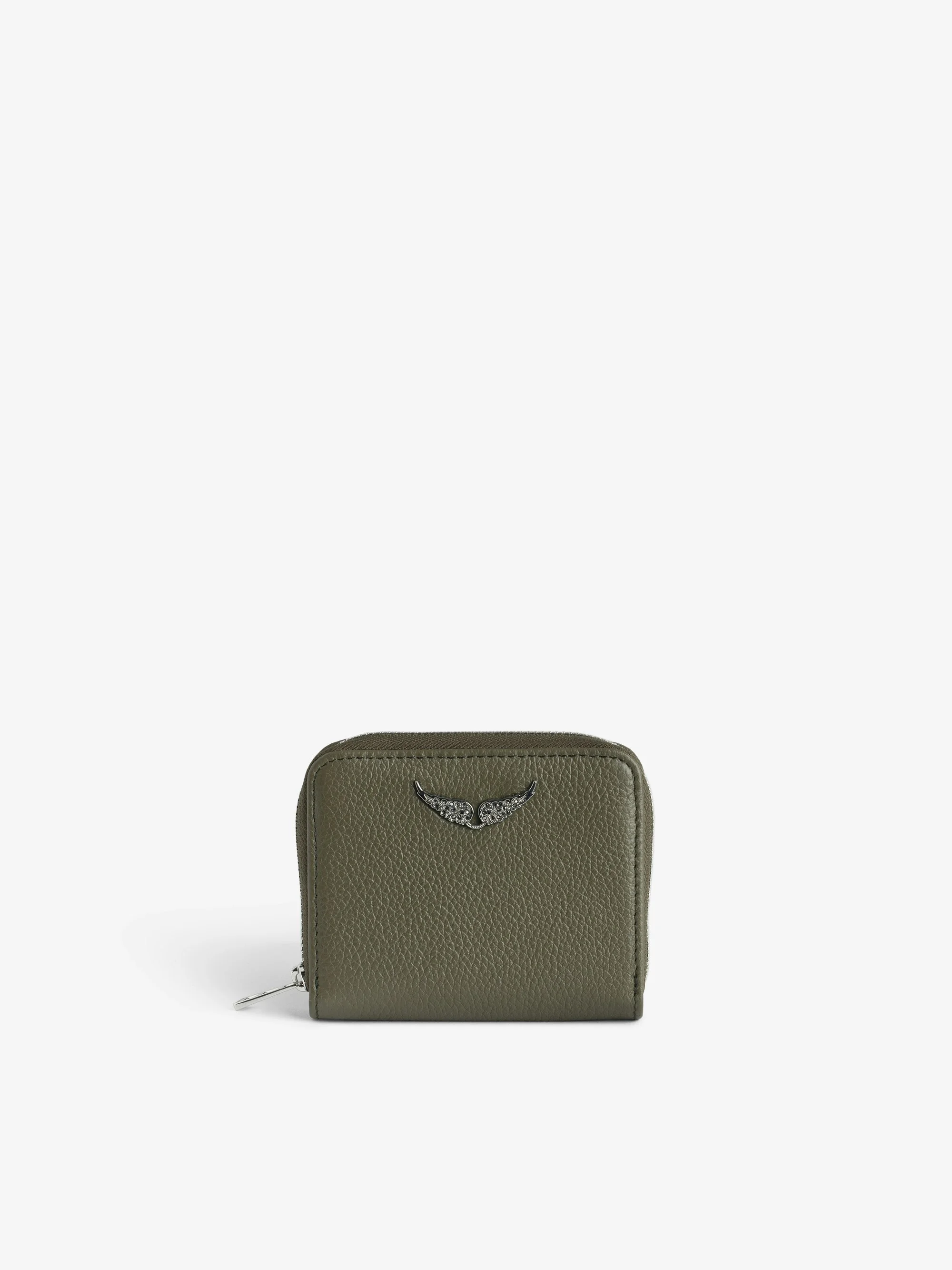Khaki grained leather wallet adorned with rhinestone wings. Description & details - Mini ZV wallet in khaki grained leather Record woman - Wings adorned with rhinestones - Zip fastening - 2 gussets 11 x 8.5 x 2 cm Composition 100% Cow leather Care Do not expose your item to a source of heat or to sunlight for a prolonged period. In the event of accidental exposure to water, leave your item to dry at room temperature, away from direct light. Avoid routinely overloading your handbag or clutch. To prolong its life, store your item in a dust bag and pad it with tissue paper to maintain its shape. To maintain the shine of your smooth or grained leather item, use a leather cream or polish. Product code: LWSG00004_RECORD