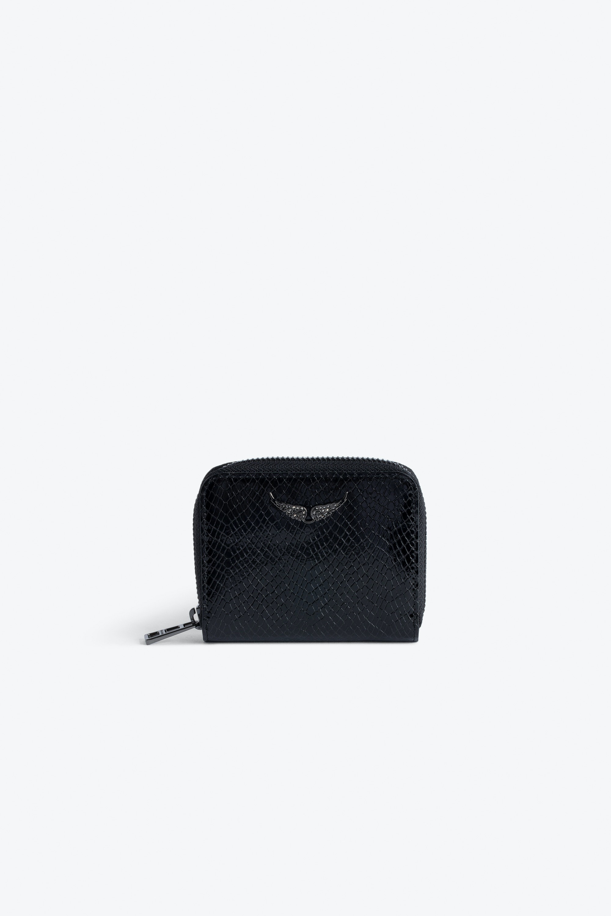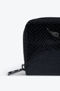 Women’s black python-effect patent leather wallet with diamanté wings charm. Description & details - Women’s Mini ZV wallet in black python-effect patent leather - 2 gussets - Wings charm with silver diamanté - Embossed Zadig&Voltaire branding Height x Width x Length: 3.3 x 4.3 x 1.6 in. Composition 100% CALFSKIN Care - Protect your leather item from humidity and any source of heat (radiator, sun) - Avoid your item coming into contact with water - Regularly care for your leather item using a colourless nourishing cream for leather, suitable for leather goods - Ensure you wear your item with similar colours - Avoid overfilling your bag to ensure its durability - In case of stains, contact a leather professional Product code: LWSG01189_NOIR