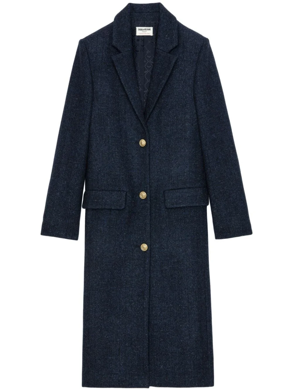 Mio coat Highlights - Blue - Wool blend - Notched lapels - Chevron stitching - Button fastening - Two side flap pockets - Long sleeves - Straight hem Imported Composition Wool 64%, Polyamide 20%, Fabric 16%