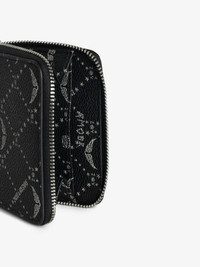 Monogram canvas wallet with signature wings. Description & details - Women's Mini ZV wallet in black coated canvas - Monogram print - Zip closure - Metal wings 11 x 8.5 x 2 cm Composition 67% Polyurethane 33% Polyester** Care - Be careful not to rub your product against abrasive surfaces - Avoid contact with liquids - Keep away from direct sunlight, heat and rain. If it gets wet, dry it immediately with a soft cloth - Store it in the case supplied at the time of purchase - To clean it, use a soft, dry cloth. Never use soap or solvents Product code: LWSG03640_BLACK
