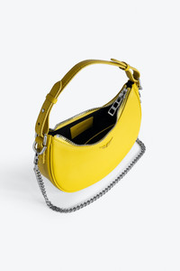 Women’s half-moon bag in yellow grained leather with a short handle, shoulder strap, chain and signature wings. Description & details - Women’s Moonrock bag in Holiday yellow grained leather - Black cotton lining - Short handle, adjustable Zadig&Voltaire branded nylon shoulder strap and removable metal chain - Signature wings with tone-on-tone diamanté embellishment - Inside patch pocket - Zip closure - Carry by hand, over the shoulder or across the body Width x Height x Depth: 9.1 x 7.1 x 2.6 in. Handle height: 7.7 in. Chain strap drop: 14.2 in. Ajustable shoulder strap drop: 11.8 - 21.3 in. Composition 100% COW LEATHER Care Do not expose your item to a source of heat or to sunlight for a prolonged period. In the event of accidental exposure to water, leave your item to dry at room temperature, away from direct light. Avoid routinely overloading your handbag or clutch. To prolong its life, store your item in a dust bag and pad it with tissue paper to maintain its shape. To maintain the shine of your smooth or grained leather item, use a leather cream or polish. Product code: LWBA02401_HOLIDAY