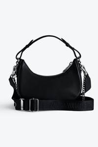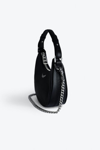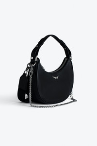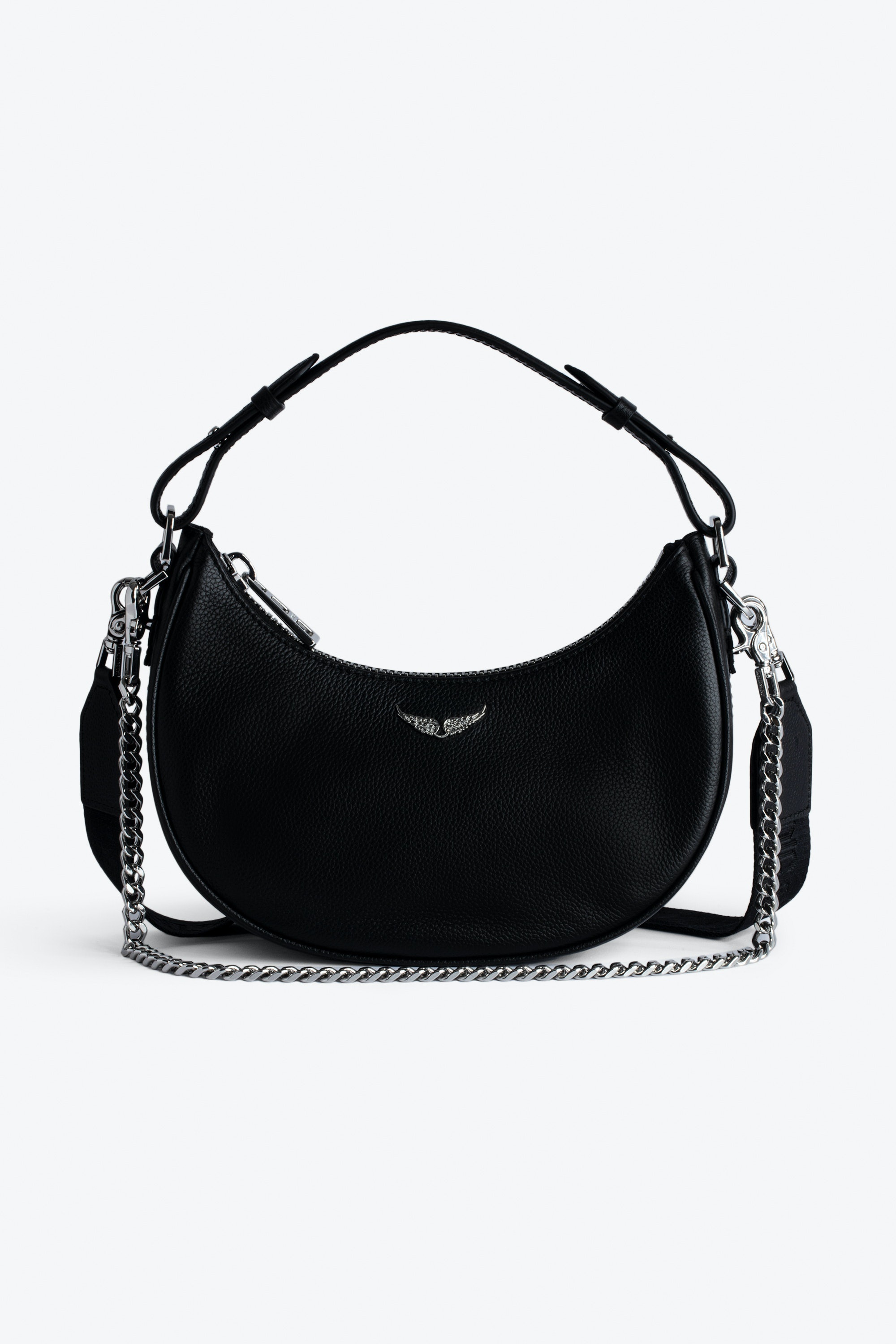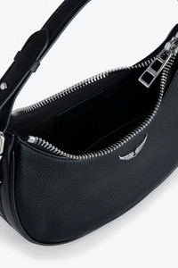 Women’s half-moon bag in black grained leather with a short handle, shoulder strap, chain and signature wings. Description & details - Women’s Moonrock bag in black grained leather - Black cotton lining - Short leather handle, adjustable Zadig&Voltaire branded nylon shoulder strap and removable metal chain - Signature wings with tone-on-tone diamanté embellishment - Inside patch pocket - Zip closure - Carry by hand, over the shoulder or across the body Width x Height x Depth: 9.1 x 7.1 x 2.6 in. Handle height: 7.7 in. Chain strap drop: 14.2 in. Ajustable shoulder strap drop: 11.8 - 21.3 in. Composition 100% COW LEATHER Care Do not expose your item to a source of heat or to sunlight for a prolonged period. In the event of accidental exposure to water, leave your item to dry at room temperature, away from direct light. Avoid routinely overloading your handbag or clutch. To prolong its life, store your item in a dust bag and pad it with tissue paper to maintain its shape. To maintain the shine of your smooth or grained leather item, use a leather cream or polish. Product code: LWBA02401_NOIR