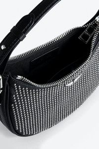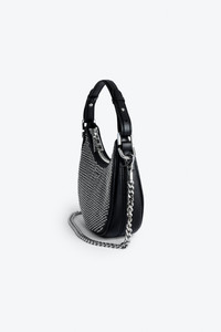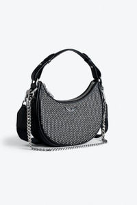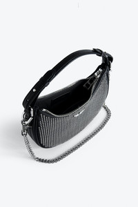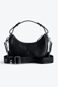 Women’s half-moon bag in black grained leather with a short handle, shoulder strap, chain and signature wings. Description & details - Women’s Moonrock bag in black grained leather - Black cotton lining - Short leather handle, adjustable Zadig&Voltaire branded nylon shoulder strap and removable metal chain - Studs and signature mirror polished metal wings - Inside patch pocket - Zip closure - Carry by hand, over the shoulder or across the body Width x Height x Depth: 9.1 x 7.1 x 2.6 in. Handle height: 7.7 in. Chain strap drop: 14.2 in. Ajustable shoulder strap drop: 11.8 - 21.3 in. Composition 100% COW LEATHER Care Do not expose your item to a source of heat or to sunlight for a prolonged period. In the event of accidental exposure to water, leave your item to dry at room temperature, away from direct light. Avoid routinely overloading your handbag or clutch. To prolong its life, store your item in a dust bag and pad it with tissue paper to maintain its shape. To maintain the shine of your smooth or grained leather item, use a leather cream or polish. Product code: LWBA02402_NOIR