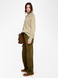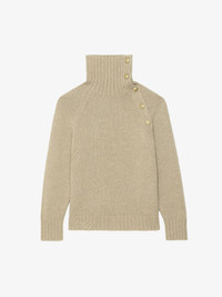 High-neck sweater with buttoned collar opening. Description & details - 100% cashmere sweater - High neck with button fastening - Long sleeves - ZV signature Model is 178 cm / 5' 10" and is wearing a size S This item fits true to size. Choose your usual size. Composition 100% Cashmere Care - Hand-wash or machine-wash on a 20°C wool cycle with a maximum spin speed of 400 rpm - Do not wring - Air dry flat - Iron inside out at a maximum of 110°C, avoiding any customised details Product code: KWSW02860_OLIVE