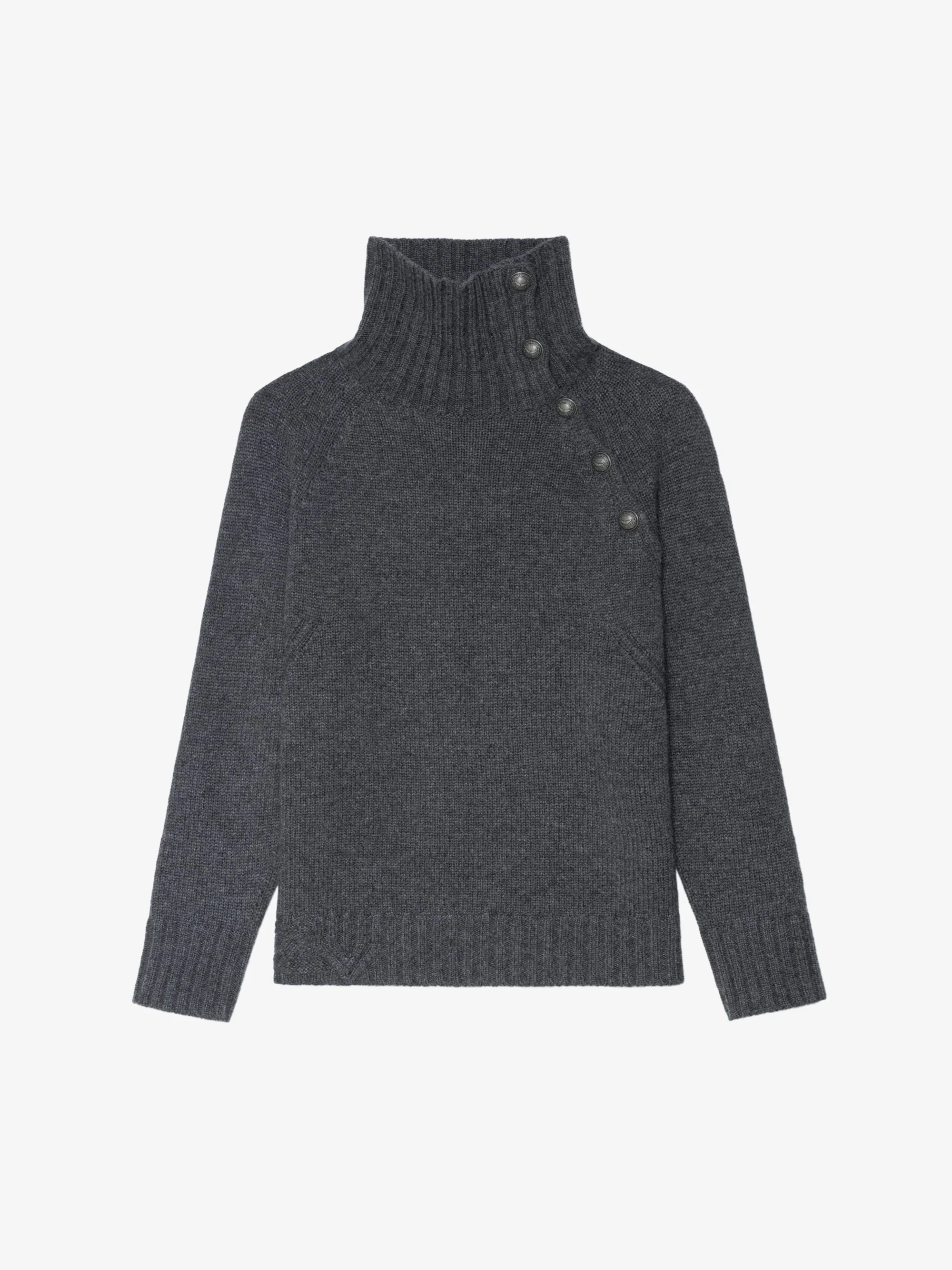 Sweater with high collar and collar button openings with wing details. Description & details - Sweater in 100% cashmere - High collar with wing buttons - Long sleeves Model is 180 cm / 5' 10" and is wearing a size S This item fits true to size. Choose your usual size. Composition 100% Cashmere Care - Hand-wash or machine-wash on a 20°C wool cycle with a maximum spin speed of 400 rpm - Do not wring - Air dry flat - Iron inside out at a maximum of 110°C, avoiding any customised details Product code: KWSW02793_ANTHRACITE