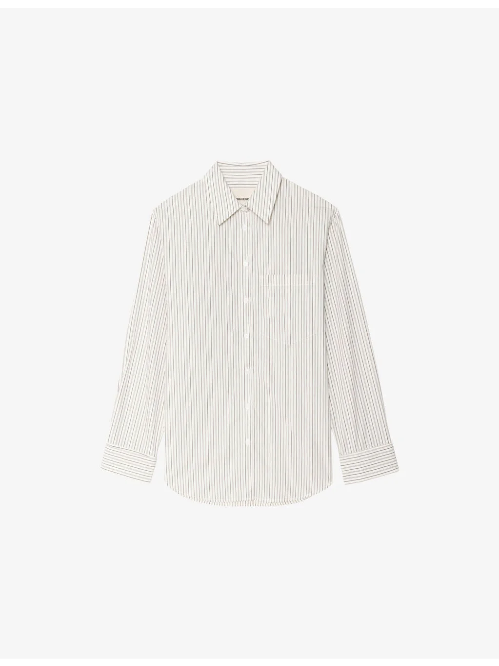 PRODUCT DETAILS - Zadig&Voltaire cotton shirt - 100% cotton - Exposed button fastening at front - Relaxed fit, collar, long sleeves, all-over stripes, patch pocket at chest, brand print at back - Hand wash - True to size - Model is 5ft 10in/1.78m and wears a size small - Lightweight, non-stretch Ref: R04507349