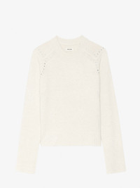 Round neck sweater with long sleeves and studs on the shoulders. Description & details - Wool and cashmere sweater - Stud details on the shoulders - Round neck - Long sleeves Model is 179 cm / 5' 10" and is wearing a size S This item fits true to size. Choose your usual size. Composition 90% Wool* 10% Cashmere Care - Hand-wash or machine-wash on a 20°C wool cycle with a maximum spin speed of 400 rpm - Do not wring - Air dry flat - Iron inside out at a maximum of 110°C, avoiding any customised details Product code: KWSW02830_ECRU