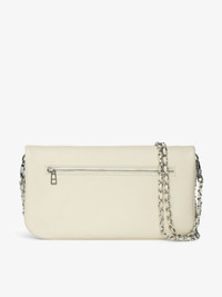 Grained leather pochette with double leather and metal chain and rhinestone-embellished wings. Description & details - Grained leather pochette - Star print - Two removable metal chains interwoven with leather - Flap with zip and magnetic closure - Small zipped back pocket and interior patch pocket - Rhinestone-embellished wing signature - Can be carried by hand, on the shoulder or cross-body 27 x 13 x 2 cm Composition 100% Cow leather Care - Protect your leather item from humidity and any source of heat (radiator, sun) - Avoid your item coming into contact with water - Regularly care for your leather item using a colourless nourishing cream for leather, suitable for leather goods - Ensure you wear your item with similar colours - Avoid overfilling your bag to ensure its durability - In case of stains, contact a leather professional Product code: LWBA03992_FLASH