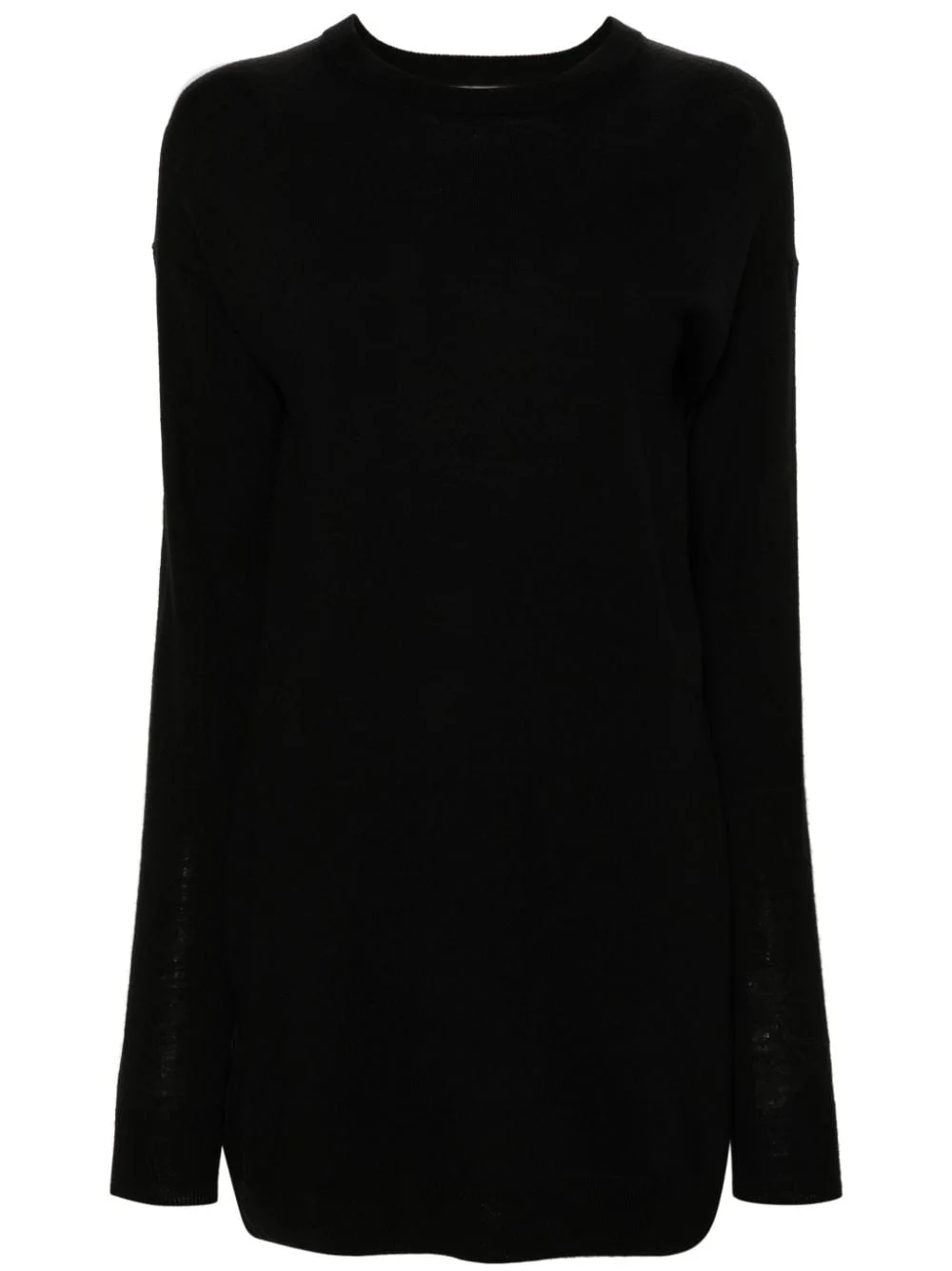 open-back knitted mini dress Highlights - Black - Merino wool - Knitted construction - Round neck - Long sleeves - Ribbed cuffs and hem - Scoop back - Thigh-length - Straight hem Imported Composition Merino 100% SIZE & FIT Model measurements Height 5 ft 10 in(1.77 m) Bust/Chest 33.07 in(84 cm) Hips 37 in(94 cm) Waist 24.8 in(63 cm) FittingInformation Designed for a relaxed fit, this piece allows for comfort and movement when worn Made with a midweight knit, this piece offers some stretch This piece fits true to size – take your usual size Washing instructions Hand Wash