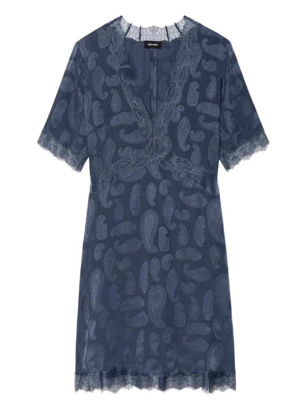paisley-pattern V-neck dress Highlights - Blue - Paisley print - Lace trim - V-neck - Short sleeves Imported Composition Silk 100% Washing instructions Hand Wash