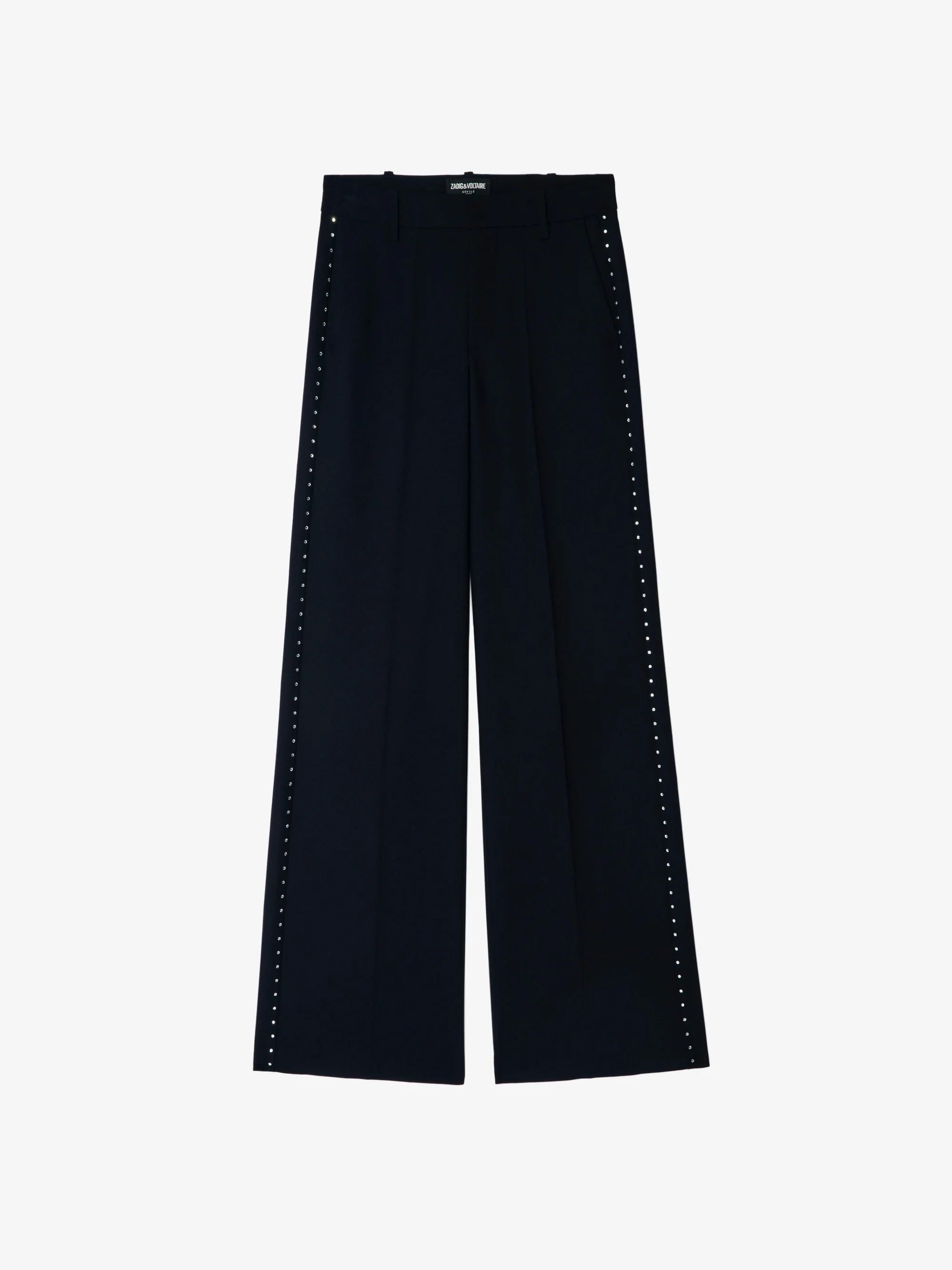 Wide-leg tailored pants with rhinestones. Description & details - Tailored pants - Wide and loose fit - High waist - Italian pockets and welt pockets - Rhinestone details Model is 177 cm / 5' 9" and is wearing a size S This item fits true to size. Choose your usual size. Composition 43% Polyester** 26% Polyester 23% Viscose 8% Elasthanne Care - Hand-wash or machine-wash inside out in a mesh laundry bag on a 20°C delicate cycle with a maximum spin speed of 400 rpm - Air dry flat - Iron inside out at a maximum of 110°C Product code: WWPA01867_ENCRE