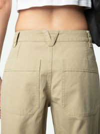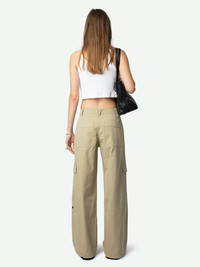 Military-style pants in washed cotton with multiple pockets. Description & details - Military-style pants in washed organic cotton - Zip and button fastening with belt loops - 2 Italian pockets, 3 side pockets including one with contrasting "Zadig" heart embroidery, and 2 back pockets - Topstitching and raw edges Model is 176 cm / 5' 9" and is wearing a size S This item is true to size. We recommend buying your usual size. Composition 100% Cotton** Care - Machine-wash inside out on a 30°C delicate cycle with similar colours - Air dry - Iron inside out at a maximum of 110°C, avoiding any customised details Product code: WWPA01851_LATTE