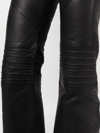 Paulin leather trousers Highlights - Low-rise - Lambskin - Embossed detail - Low-rise - Bootcut - Button fly fastening - Straight leg - Classic five pockets Imported Composition Lamb Skin 100% SIZE & FIT Model measurements Height 5 ft 10 in(1.77 m) Bust/Chest 30.3 in(77 cm) Hips 35 in(89 cm) Waist 22.8 in(58 cm) FittingInformation Designed with a bootcut leg, these trousers allow for a close fit at the waist and with an unrestricted, comfortable fit and additional room at the calves Soft leather has a supple and smooth construction offering some flexibility This piece fits true to size – take your usual size