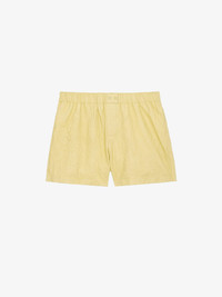 Women's light yellow crinkled leather shorts. Description & details Zadig&Voltaire’s signature material, crinkled leather is obtained by means of a multi-step process developed by the brand, guaranteeing a unique product that showcases exceptional know-how. - Women's Shea light yellow crinkled leather shorts - Mid rise - Elasticated waist - 2 buttons - 2 back pockets Model is 174 cm / 5' 8" and is wearing a size 36 This item is true to size. We recommend buying your usual size. Composition 100% LAMBSKIN Care Protect from light and humidity. Avoid any abrasive surface. Have cleaned by a leather specialist. Product code: RWBS00001_SHEA
