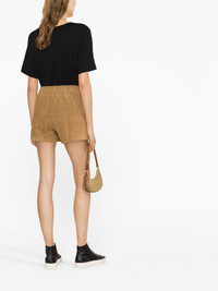 Paxi suede shorts These shorts from Zadig & Voltaire are characterised by a soft suede construction, whilst the brown-hued pair boast a relaxed elasticated waistband. Imported Composition Outer: Goat Skin 100% Lining: Polyester 100% SIZE & FIT Model measurements Height 5 ft 10 in(1.77 m) Bust/Chest 32.28 in(82 cm) Hips 34.64 in(88 cm) Waist 24.4 in(62 cm) FittingInformation This piece fits true to size. We recommend you get your regular size Designed to be fitted at the waist and hips, loose over the leg Made with a mid-weight non-stretch fabric Washing instructions Dry Clean Only