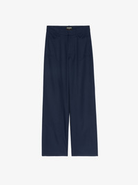 Blended wool twill pants, cargo style with western cuts. Description & details - Blended wool twill pants - Cargo style with western cuts - Patch pockets, jean pockets, ticket pocket - High waist - Wide fit Model is 180 cm / 5' 10" and is wearing a size S This item fits true to size. Choose your usual size. Composition 55% Polyester** 45% Virgin wool** Care - Hand-wash or machine-wash on a 20°C wool cycle with a maximum spin speed of 400 rpm - Do not wring - Air dry flat - Iron inside out at a maximum of 110°C, avoiding any customised details Product code: WWPA01876_ENCRE
