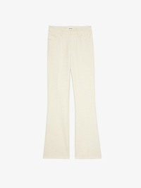 A masterful blend of classic tailoring and modern sophistication. These flared, tailored pants are crafted from premium cotton with a refined weave, offering a structured yet comfortable fit. Featuring practical pockets and a sleek silhouette, the Pistol Pants transition effortlessly from day to night. Description & details - Tailored pants in fancy cotton - Pleats along the length - Zip and hook fastening and belt loops - 2 side pockets and 2 welt pockets at the back - Flared hem Model is 171 cm / 5' 7" and is wearing a size 36 This item is true to size. We recommend buying your usual size. Composition 48% Cotton** 22% Viscose 20% Cotton 5% Polyester 5% Polyamide Care - This garment should be dry-cleaned only - Iron inside out at a maximum of 110°C, avoiding any customised details Product code: WWPA01854_VANILLE