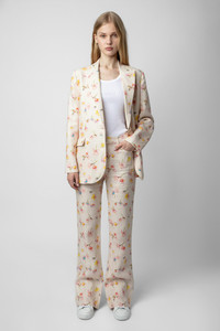 Women's flared linen pants in off-white floral print Description & details These tailored, flared pants are very stylish and feature this season's must-have floral print. Go for the total look with the matching blazer. - Zadig&Voltaire women's Vanille off-white tailored pants - Floral print - Belt loops at the waist - 5 pockets - Flared cut - Pleats down the leg - Back slits Model is 178 cm / 5' 10" and is wearing a size 36 This item is true to size. We recommend buying your usual size. Composition 100% Linen Care Machine-wash your trousers inside out using a liquid detergent and at a maximum of 30°C. Wash with similar colours. The spin cycle speed should not exceed 100 rpm. Iron your trousers on a moderate heat. Product code: WWPA00757_VANILLE