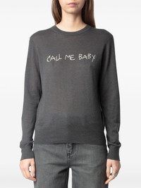 Pravis jumper Highlights - Anthracite grey - Embroidered slogan - Crew neck - Long sleeves - Straight hem Imported Composition Cashmere 100%