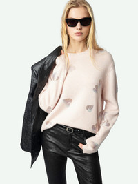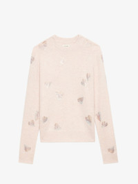 Pale pink cashmere sweater with long sleeves and hearts embellished with rhinestones. Description & details - 100% pale pink cashmere Pearly sweater for women - Heart-shaped rhinestone embellishments - Round neck - Long sleeves, ribbed edges, and ZV pointelle signature Model is 177 cm / 5' 9" and is wearing a size S This item is true to size. We recommend buying your usual size. Composition 100% Cashmere Care - Hand-wash or machine-wash on a 20°C wool cycle with a maximum spin speed of 400 rpm - Do not wring - Air dry flat - Iron inside out at a maximum of 110°C, avoiding any customised details Product code: KWSW02772_PEARLY