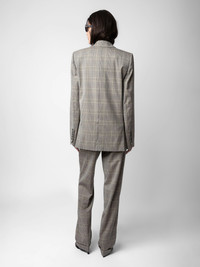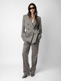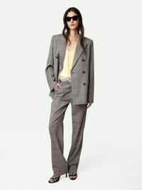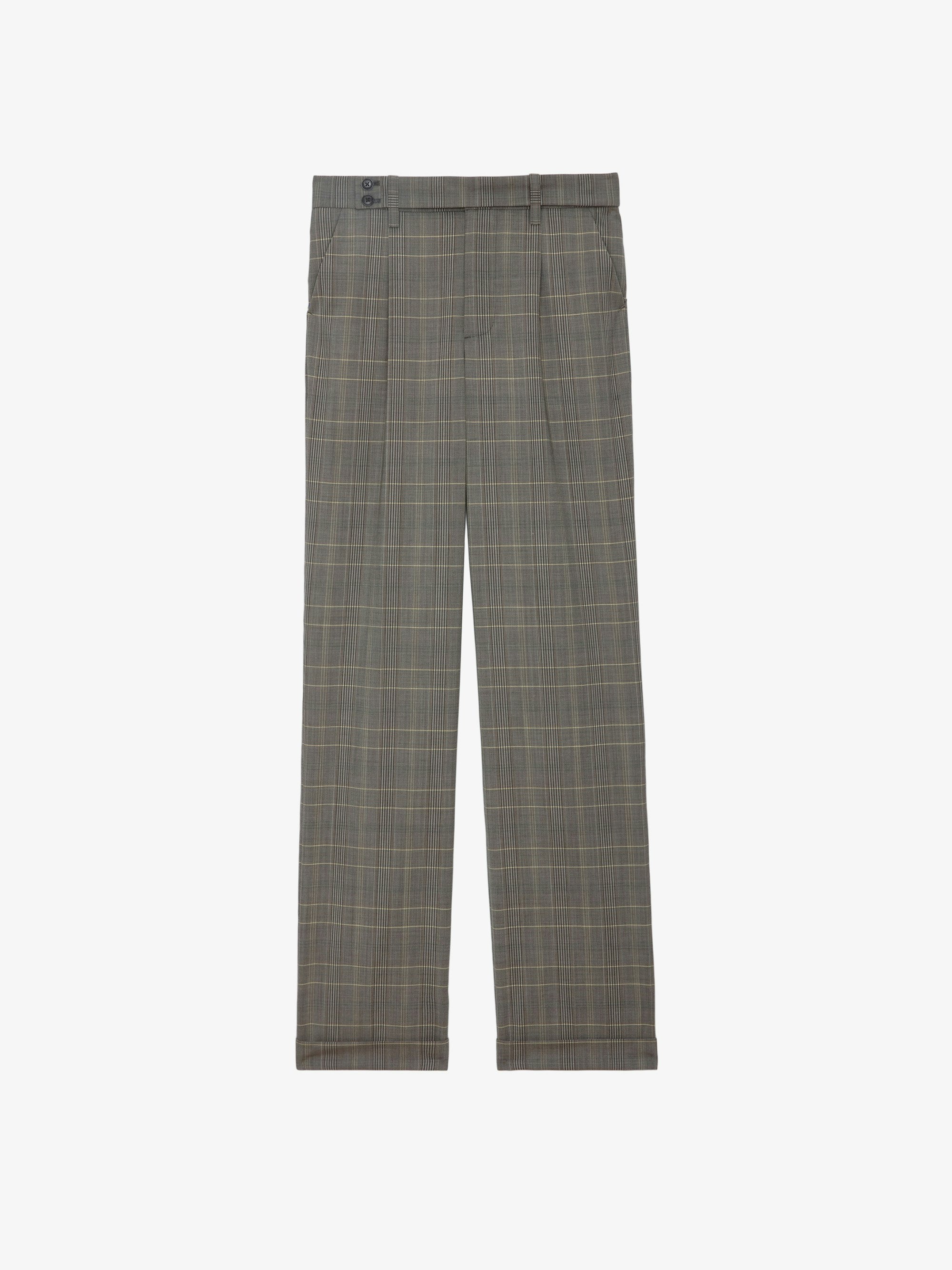 Checked grey wool tailored pants with pockets. Description & details - Women’s grey wool tailored pants - Checked print - 2 side pockets, 1 buttoned flap pocket and 1 piped pocket on the back - Belt loops and double button tab at the waist - Zip and button fly - Wide-leg at the hem Model is 178 cm / 5' 10" and is wearing a size 36 This item is true to size. We recommend buying your usual size. Composition 98.00% VIRGIN WOOL 2.00% WOOL Care - Hand-wash or machine-wash inside out in a mesh laundry bag on a 20°C delicate cycle with a maximum spin speed of 400 rpm - Air dry flat - Iron inside out at a maximum of 110°C Product code: WWPA00787_GRIS
