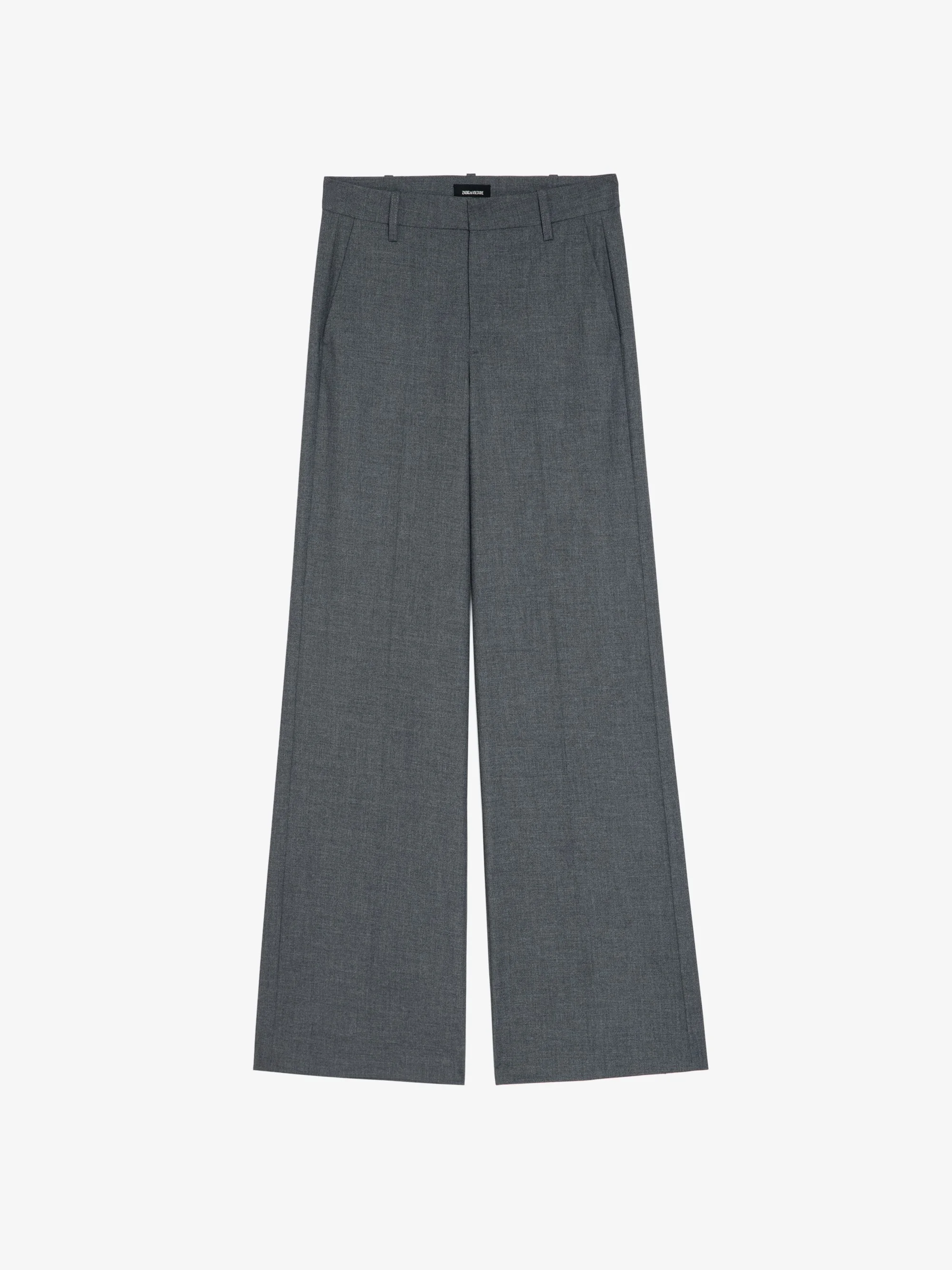 Wide straight-cut tailored pants. Description & details - Tailored pants - Wide regular fit - High waist - Italian pockets and welt pockets Model is 177 cm / 5' 9" and is wearing a size S This item fits true to size. Choose your usual size. Composition 64% Polyester** 35% Viscose** 1% Elasthanne Care - Hand-wash or machine-wash inside out in a mesh laundry bag on a 20°C delicate cycle with a maximum spin speed of 400 rpm - Air dry flat - Iron inside out at a maximum of 110°C Product code: WWPA01875_GRIS CHINE