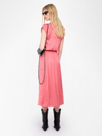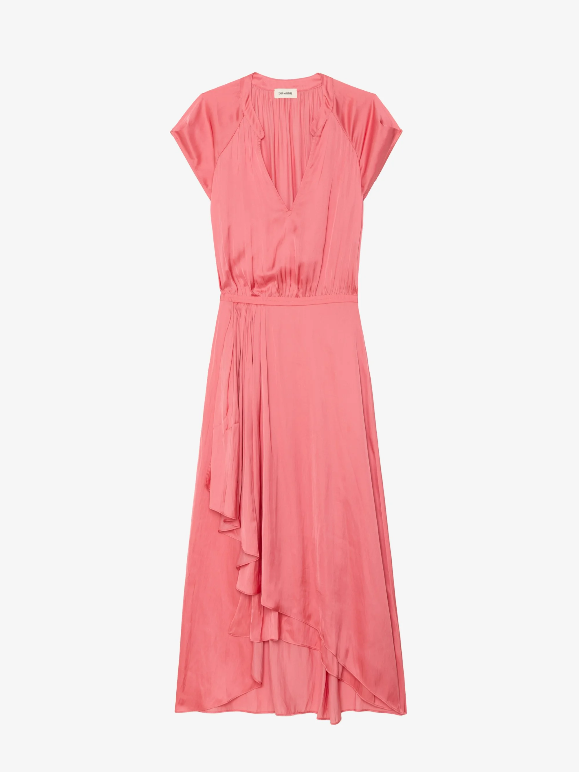 Mid-length satin dress with short raglan sleeves and asymmetrical ruffled skirt. Description & details - Mid-length satin dress - V-neckline - Short raglan sleeves - Asymmetrical ruffled skirt Model is 181 cm / 5' 11" and is wearing a size S This item is true to size. We recommend buying your usual size. Composition 57% Polyester** 43% Polyester Care - Hand-wash or machine-wash inside out in a mesh laundry bag on a 20°C delicate cycle with a maximum spin speed of 400 rpm - Air dry flat - Iron inside out at a maximum of 110°C Product code: WWDR01358_TEA ROSE
