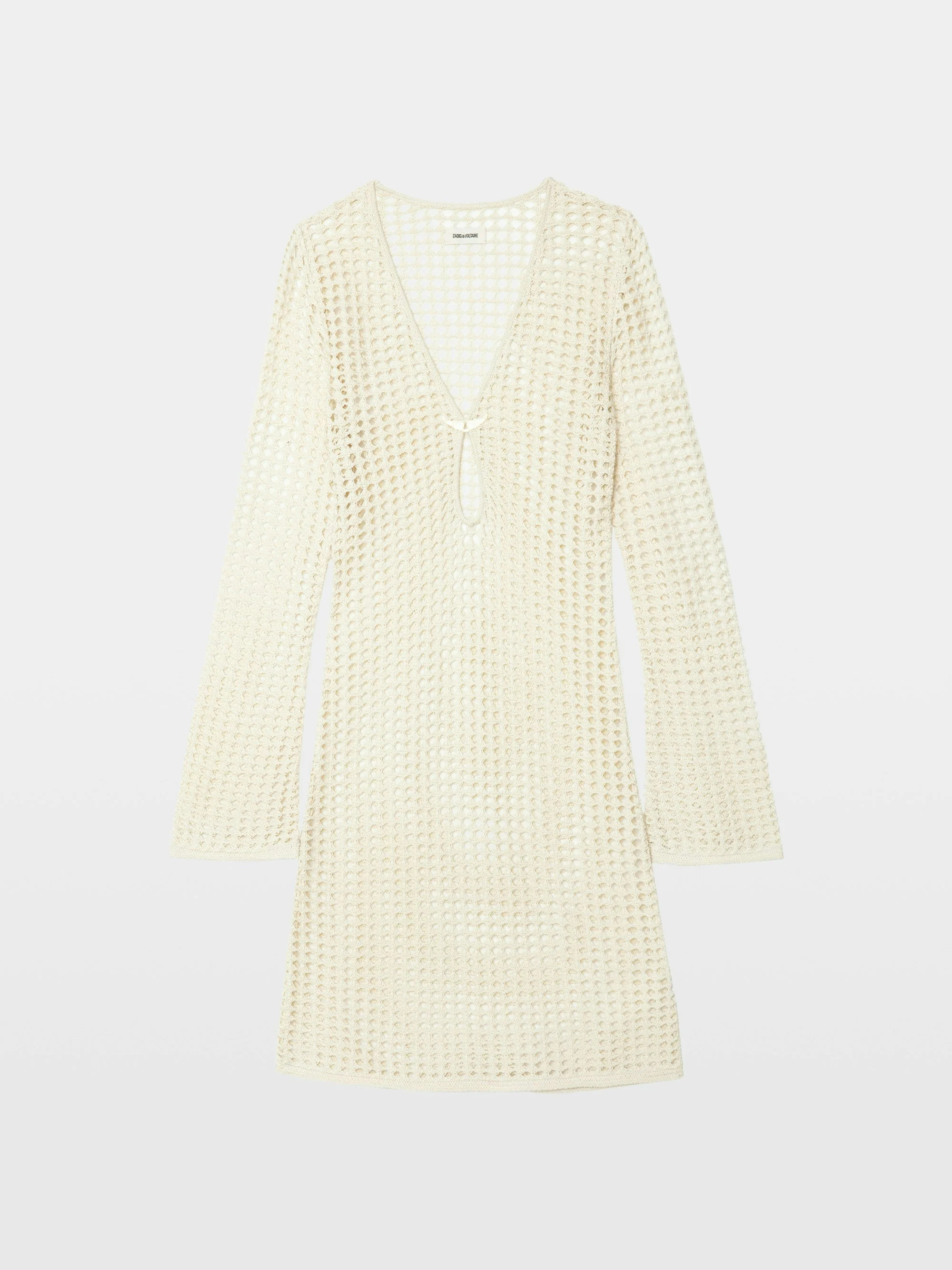 Crochet dress with long sleeves. Description & details - Short crochet dress - Long flared sleeves - V-neck with wing charm closure Model is 175 cm / 5' 8" and is wearing a size S This item fits true to size. Choose your usual size. Composition 100% Cotton* Care This garment should be dry-cleaned only. Product code: KWDR01222_JUDO