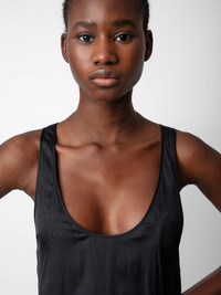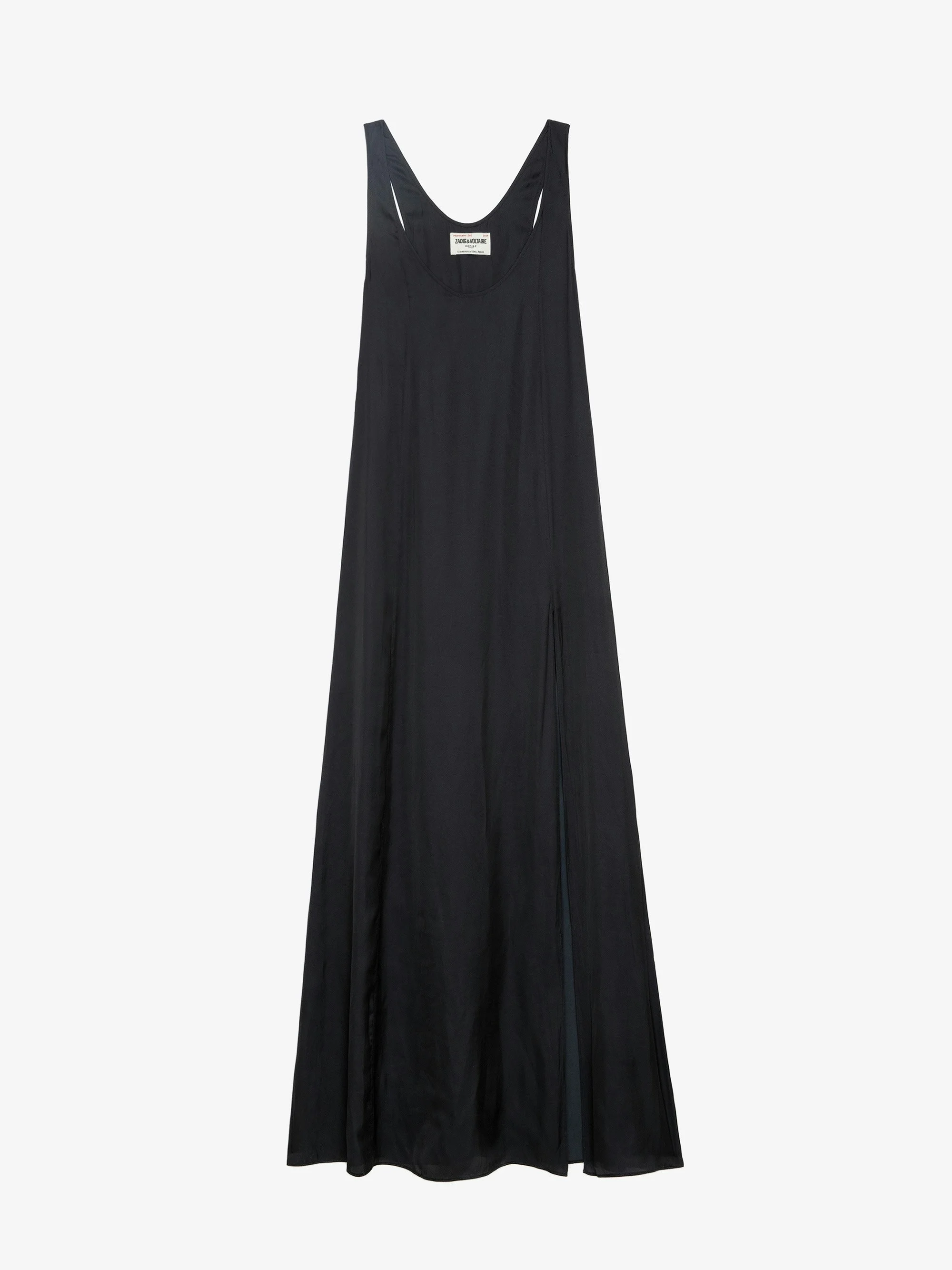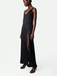 Black satin long dress, split on the skirt and cutaway shoulders. Description & details - Women’s long black flowing satin dress - Round neckline and cutaway shoulders - Flared skirt with split Model is 177 cm / 5' 9" and is wearing a size S If you’re between two sizes, we recommend choosing the smaller size. Composition 57% POLYESTER** 43% POLYESTER Care - Hand-wash or machine-wash inside out in a mesh laundry bag on a 20°C delicate cycle with a maximum spin speed of 400 rpm - Air dry flat - Iron inside out at a maximum of 110°C Product code: WWDR01315_NOIR