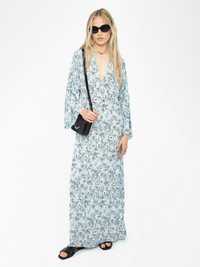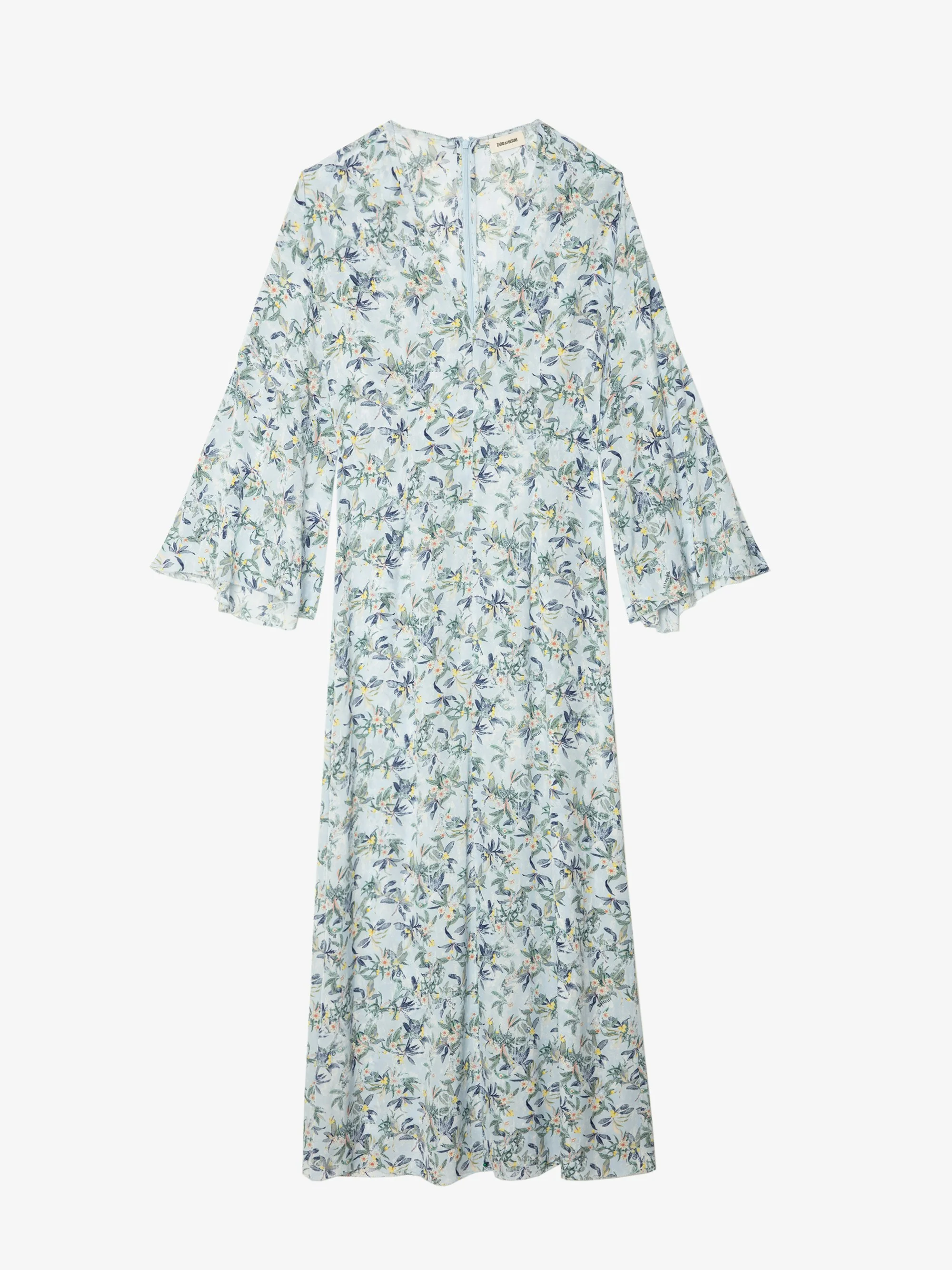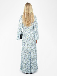 Long printed viscose dress, long sleeves. Description & details - Long dress in 100% viscose - Floral print - Long flared sleeves - Deep neckline - Fluid cut Model is 175 cm / 5' 8" and is wearing a size S This item has a loose fit. For a more fitted look, choose one size down from your usual size. Composition 100% Viscose Care - Hand-wash or machine-wash inside out in a mesh laundry bag on a 20°C delicate cycle with a maximum spin speed of 400 rpm - Air dry flat - Iron inside out at a maximum of 110°C Product code: WWDR02535_CLOUD