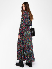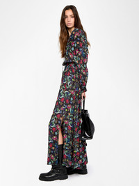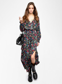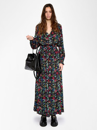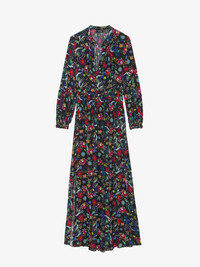 Long dress in printed viscose, elasticated waist and long sleeves. Description & details - Long dress - Printed - Deep neckline - Long sleeves - Elasticated waist Model is 178 cm / 5' 10" and is wearing a size S This item fits true to size. Choose your usual size. Composition 100% Viscose** Care - Hand-wash or machine-wash inside out in a mesh laundry bag on a 20°C delicate cycle with a maximum spin speed of 400 rpm - Air dry flat - Iron inside out at a maximum of 110°C Product code: WWDR02619_ENCRE
