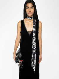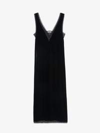 Long dress in plain velvet, lingerie spirit with French lace. Description & details - Long lingerie-inspired dress in velvet - Deep V-neckline with lace details on front and back - Straps with French lace details - Fluid cut This French lace was crafted by Sophie Hallette exclusively for Zadig&Voltaire. Model is 180 cm / 5' 10" and is wearing a size S This item fits true to size. Choose your usual size. Composition 80% Viscose** 20% Silk Care - Hand-wash or machine-wash inside out in a mesh laundry bag on a 20°C delicate cycle with a maximum spin speed of 400 rpm - Air dry flat - Iron inside out at a maximum of 110°C Product code: WWDR02571_BLACK