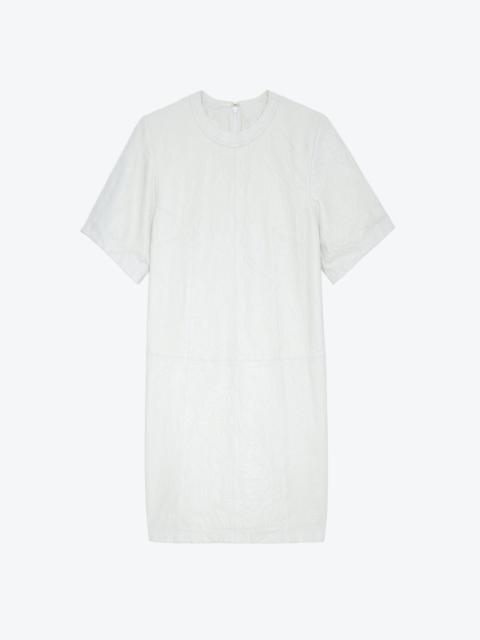 Women’s short brown crinkled leather dress with short sleeves. Description & details - Women’s short Chocolate brown crinkled leather dress - Round neckline and zip fastening at the back - Short sleeves - Zadig&Voltaire’s signature material, crinkled leather, is obtained by means of a multi-step process developed by the brand, guaranteeing a unique product that showcases exceptional know-how. Model is 179 cm / 5' 10" and is wearing a size S This item is true to size. We recommend buying your usual size. Composition 100% LAMBSKIN Care This garment should be cared for by a leather professional. Product code: RWDR00026_CHOCOLATE