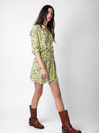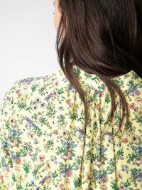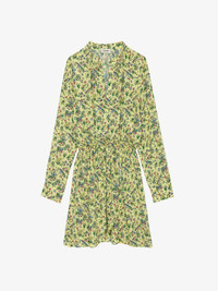 Women's yellow floral print dress. Description & details - Women's yellow floral print dress - Button down closure on top - Elasticed waistband - Flowing skirt - Long sleeves Model is 174 cm / 5' 8" and is wearing a size S This item is true to size. We recommend buying your usual size. Composition 100% VISCOSE Product code: WWDR01348_CEDRA