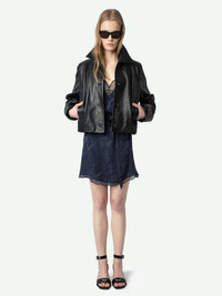 Short lingerie-inspired dress in silk jacquard, back wing embroidery, thin straps and exclusive French lace. Description & details - Short lingerie-inspired silk dress - Chain jacquard and contrasting patterned lace - V-neckline - Thin non-adjustable straps - Asymmetrical hem with lace edges This French lace was created by Sophie Hallette exclusively for Zadig&Voltaire. Model is 171 cm / 5' 7" and is wearing a size S This item is true to size. We recommend buying your usual size. Composition 100% Silk Care - Hand-wash or machine-wash inside out in a mesh laundry bag on a 20°C delicate cycle with a maximum spin speed of 400 rpm - Air dry flat - Iron inside out at a maximum of 110°C Product code: WWDR02421_ENCRE