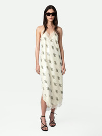 Ecru lingerie-style long dress with floral print, sequins, straps and lace trim. Description & details - Women’s Mastic ecru long flowing lingerie-style dress - Floral print and tone-on-tone sequins - V neckline - Thin non-adjustable straps and splits at the hem - Lace bands Model is 177 cm / 5' 9" and is wearing a size S This item is true to size. We recommend buying your usual size. Composition 100% POLYESTER Care - Hand-wash or machine-wash inside out in a mesh laundry bag on a 20°C delicate cycle with a maximum spin speed of 400 rpm - Air dry flat - Iron inside out at a maximum of 110°C Product code: WWDR01350_MASTIC