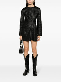 Rixina gathered leather minidress Highlights - Jet black - Lambskin - Cracked effect - Gathered detailing - Round neck - Concealed rear zip fastening - Drop shoulder - Long sleeves - Straight hem - Above-knee length - Cotton lining Imported Composition Lamb Skin 100%, Cotton 100% Washing instructions Specialist Cleaning