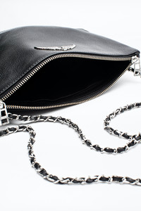 Zadig&Voltaire women's black bag. Description & details The iconic Rock clutch will take you seamlessly from day to evening. It features a double chain and leather strap, so you can choose to wear it across the body or on the shoulder. - Zadig&Voltaire Women’s Rock clutch in black leather - Worn on the shoulder or across the body - Removable chains - Adjustable and removable shoulder strap - Several compartments including a large, zipped interior compartment - Zipped pocket at the back - Zip closure - Flap with magnetic closure - Removable double metal chain - Crystal-embellished wings charm Width x Height x Depth: 10.6 x 5 x .8 in. Chain strap drop : 13 in and 22.5 in Composition 100% COW LEATHER Care Do not expose your item to a source of heat or to sunlight for a prolonged period. In the event of accidental exposure to water, leave your item to dry at room temperature, away from direct light. Avoid routinely overloading your handbag or clutch. To prolong its life, store your item in a dust bag and pad it with tissue paper to maintain its shape. To maintain the shine of your smooth or grained leather item, use a leather cream or polish. Product code: PWGAP2003F_NOIR