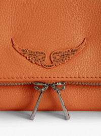 Grained leather clutch with double chain and signature wings. Description & details - Women’s Rock clutch in Vibe orange grained leather - Two removable intertwined leather and metal chains - Flap with magnetic zip fastening - Small zipped pocket on the back and small patch pocket inside - Lined - Wings embellished with tone-on-tone diamante - Can be carried in the hand or worn on the shoulder or across the body Width x Height x Depth: 27 x 13 x 2 cm. Chain strap drop: 33 cm et 57 cm Composition 100% COW LEATHER Care Do not expose your item to a source of heat or to sunlight for a prolonged period. In the event of accidental exposure to water, leave your item to dry at room temperature, away from direct light. Avoid routinely overloading your handbag or clutch. To prolong its life, store your item in a dust bag and pad it with tissue paper to maintain its shape. To maintain the shine of your smooth or grained leather item, use a leather cream or polish. Product code: LWBA00001_VIBE