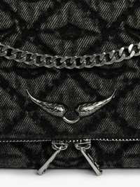 Clutch in denim with sliding metal chain and signature wings. Description & details - Pochette in stonewashed and quilted denim with monogram animation - Sliding metal chain with signature eyelets - Zip closure with signature wings puller - Flat back pocket with magnetic closure - Patch interior pocket - Embossed wings signature - Shoulder or cross-body wear 27 x 12 cm Composition 60% Cotton** 40% Cotton Product code: LWBA04079_ROAD