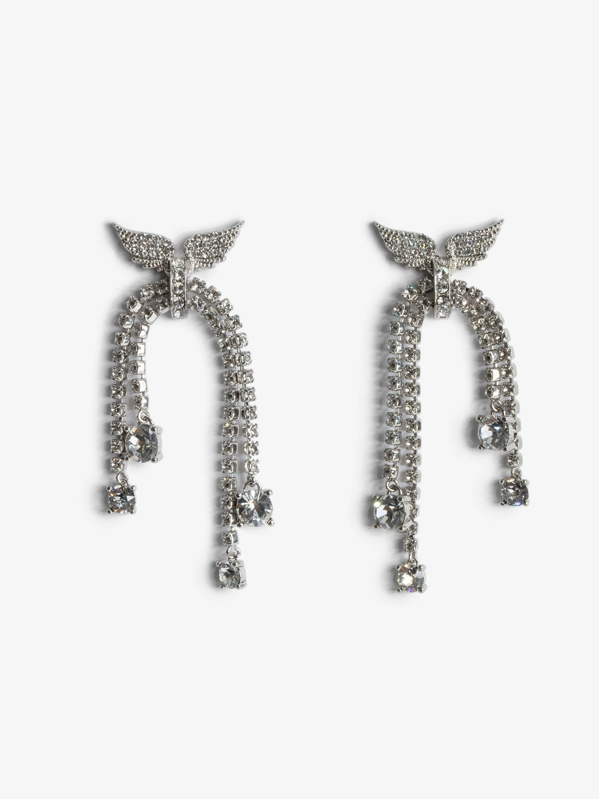 Silver-tone brass drop earrings with diamanté wings and tassels. Description & details - Women’s Shiny Silver recycled brass drop earrings - Wings and tassels set with diamanté - Butterfly clasp Composition 100% BRASS Care - Clean you jewellery with a soft, dry cloth - Avoid contact with water and chemicals (fragrance, cosmetics, chlorine, hydroalcoholic gel) - Protect your jewellery from humidity and any source of heat - Avoid sleeping with your jewellery on - Store your jewellery in its protective pouch Product code: OWJW00589_SHINY SILVER
