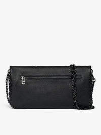 Punk grained leather clutch with double leather and metal chain and rhinestone-embellished wings. Description & details - Clutch in grained leather - Punk animation - Two removable metal chains interwoven with leather - Flap with zip and magnetic closure - Small zipped back pocket and interior slip pocket - Wing signature adorned with rhinestones - Can be carried by hand, shoulder or cross-body 27 x 13 x 2 cm Composition 100% Cow leather Care - Protect your leather item from humidity and any source of heat (radiator, sun) - Avoid your item coming into contact with water - Regularly care for your leather item using a colourless nourishing cream for leather, suitable for leather goods - Ensure you wear your item with similar colours - Avoid overfilling your bag to ensure its durability - In case of stains, contact a leather professional Product code: LWBA04029_BLACK